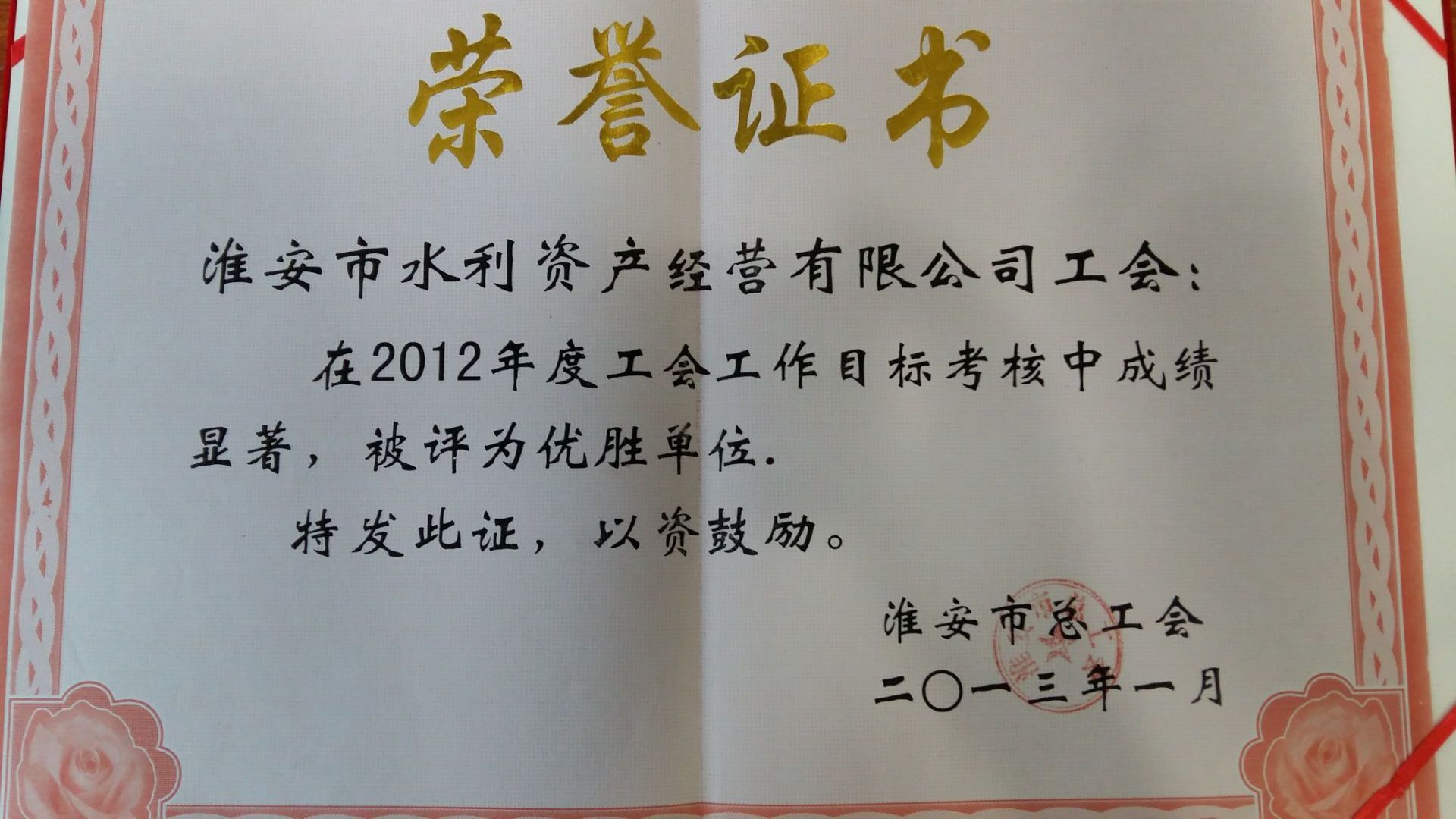 2012年度工會目標考核優勝單位